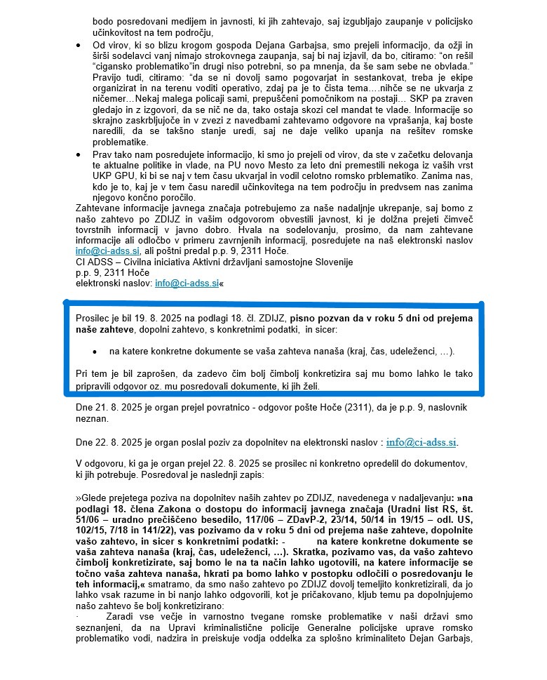 Smo pa v CI ADSS izključno od policije deležni odklonskosti pri naših zahtevah po Zakonu o dostopu do informacij javnega značaja. Njihovega odklonskega in izogibajočega odnosa do naših zahtev ni mogoče prezreti. Dne 30.9.2025 smo objavili naslednji prispevek:
